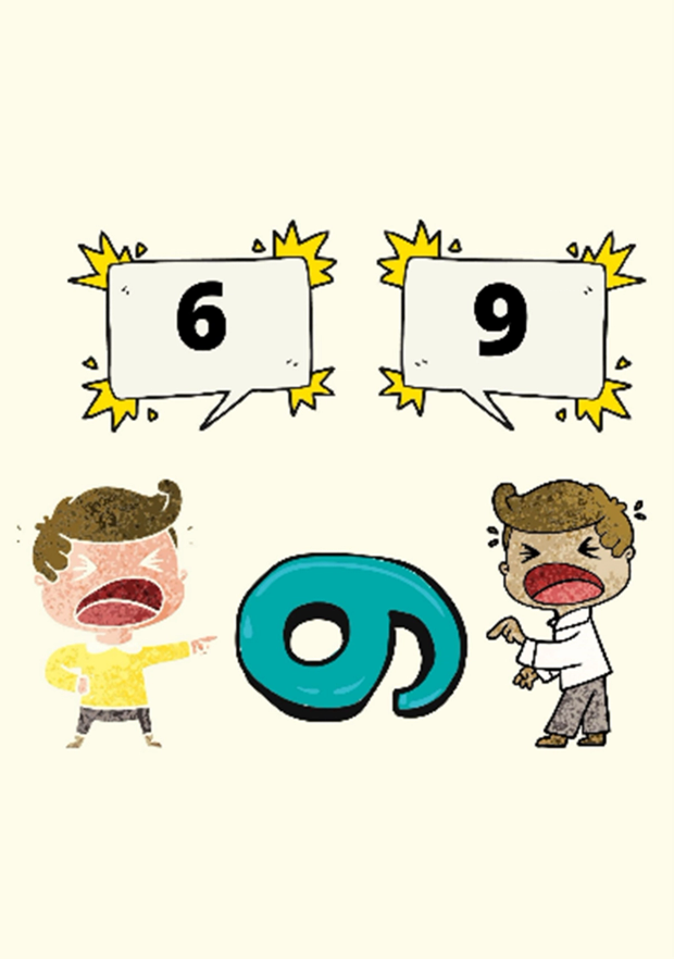 Ta utgangspunkt i illustrasjonen av de to personene som krangler om hvorvidt de ser på et 6-tall eller et 9-tall.