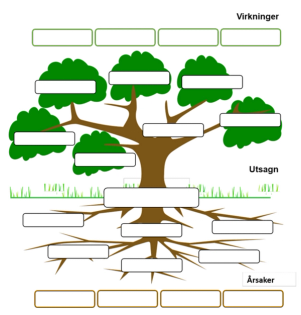 Velg et utsagn fra listen nedenfor eller et eget eksempel, og be elevene skrive teksten i feltet i «stammen» av treet. For mellomtrinnet kan det være lurt å modellere med et eksempel i plenum før elevene jobber med arbeidsarket. - 2