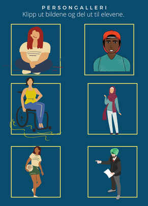 Til denne øvelsen trenger elevene et arbeidsark og bildekort av personer. Elevene skal først jobbe individuelt, og deretter i grupper. Gi elevene som skal jobbe i samme gruppe det samme utvalget av bildekort.